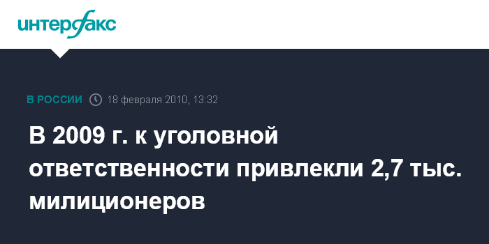В 2009 г. к уголовной ответственности привлекли 2,7 тыс. милиционеров