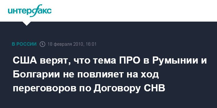 США верят, что тема ПРО в Румынии и Болгарии не повлияет на ход переговоров по Договору СНВ