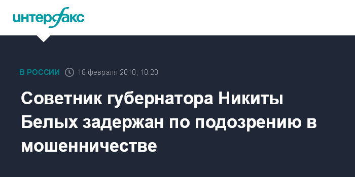 Советник губернатора Никиты Белых задержан по подозрению в мошенничестве