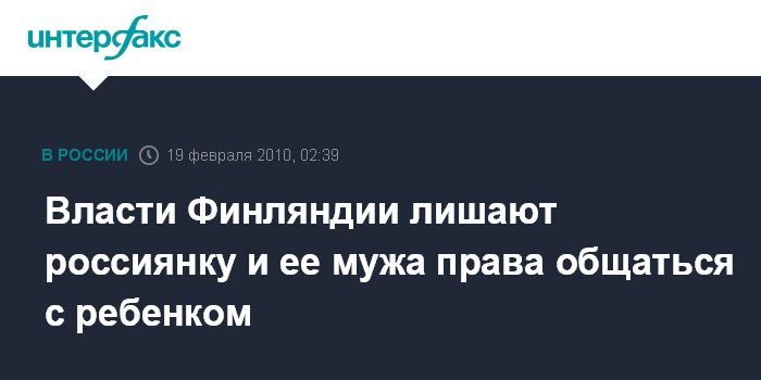Хельсинки. 19 февраля. ИНТЕРФАКС - Власти Финляндии лишают проживающую в городе Турку (Turku) россиянку права общаться со своим семилетним сыном, которого поместили приют по решению органов опеки.