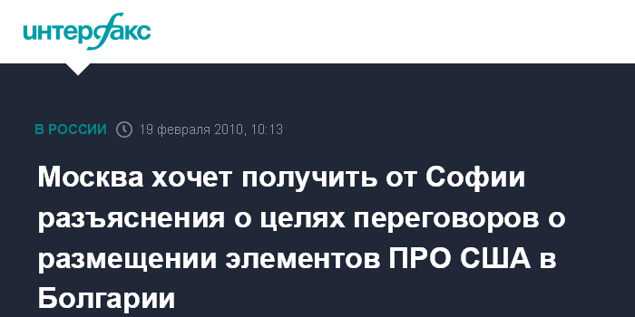 "В связи с появившейся информацией о ведущихся болгарскими властями консультациях с США о размещении элементов американской ПРО на территории Болгарии российская сторона направляет официальный запрос о получении разъяснений о целях и существе таких переговоров", - говорится в сообщении МИД, размещенном на сайте ведомства в четверг.