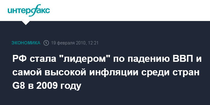 Москва. 19 февраля. INTERFAX.RU - Россия среди стран "восьмерки" продемонстрировала наибольшее падение ВВП и самую высокую инфляцию в 2009 году, говорится в докладе Росстата.
