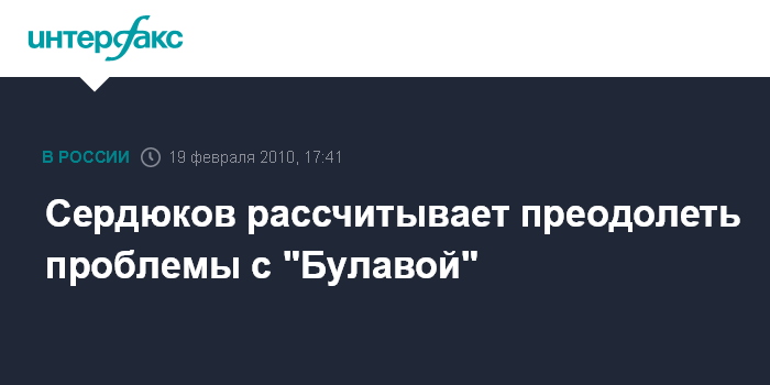 Хельсинки. 19 февраля. INTERFAX.RU - Министр обороны РФ Анатолий Сердюков признает "технические сложности" при создании баллистической ракеты "Булава", но рассчитывает на их преодоление.