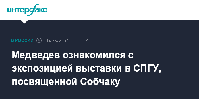 Санкт-Петербург. 20 февраля. INTERFAX.RU - Президент России Дмитрий Медведев вспомнил основные вехи жизни Анатолия Собчака, осмотрев посвященную первому мэру Петербурга выставку на юридическом факультете Санкт-Петербургского государственного университета. Он ознакомился с экспозицией вместе с вдовой Собчака Людмилой Нарусовой и дочерью Ксенией, губернатором Санкт-Петербурга Валентиной Матвиенко и ректором СПГУ Николаем Кропачевым. На стендах описана биография ученого, политика и общественного деятеля, приведены фотографии и научные труды А.Собчака.