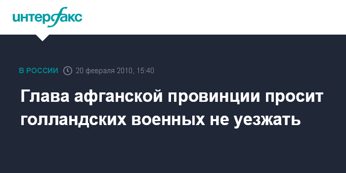 Лондон. 20 февраля. INTERFAX.RU - Глава провинции Урузган в центральном Афганистане Асадулла Хамдам заявил, что решение Нидерландов вывести свой вооруженный контингент из этого района отбросит назад все усилия по наведению порядка в регионе, передает в субботу британская телерадиокорпорация Би-Би-Си.