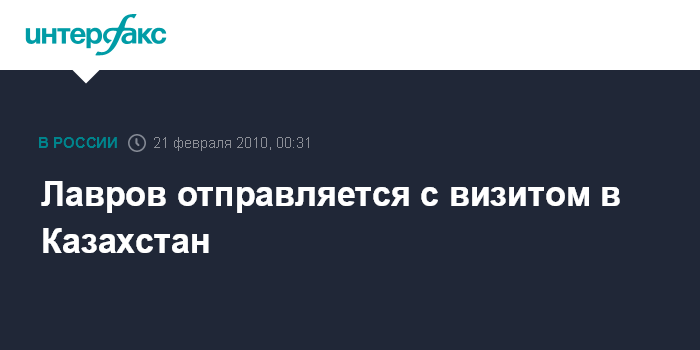 Москва. 21 февраля. ИНТЕРФАКС – Глава МИД РФ Сергей Лавров посетит 21-22 февраля с рабочим визитом Казахстан, сообщили в МИД РФ.