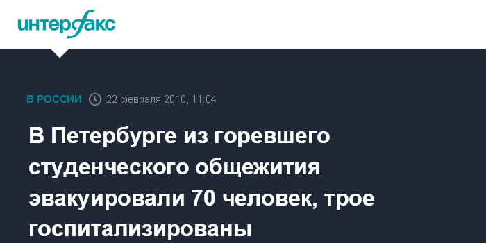 Москва. 22 февраля. INTERFAX.RU - В Петербурге в воскресенье вечером горело студенческое общежитие, сообщили "Интерфаксу" в Главном управлении МЧС по Северной столице.