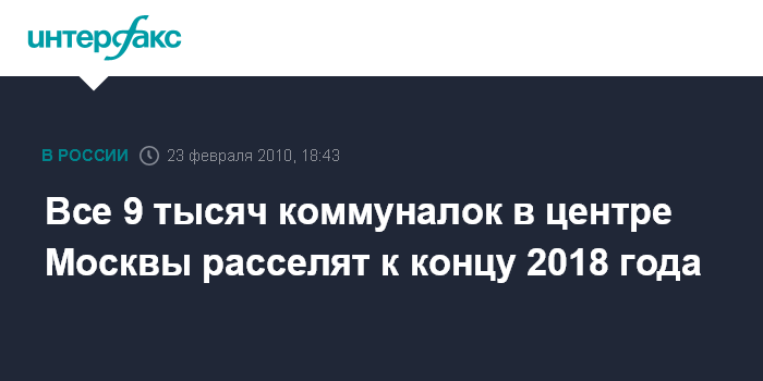 Москва. 23 февраля. INTERFAX.RU – Коммунальные квартиры в центре Москвы, находящиеся в собственности города, будут расселены к концу 2018 года, заявил "Интерфаксу" префект ЦАО Алексей Александров.