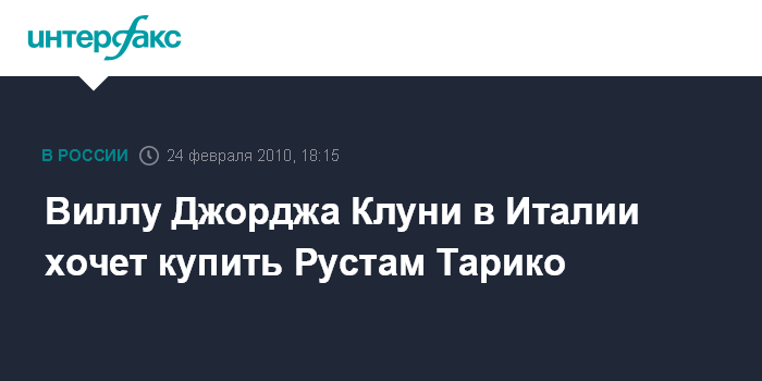 Рим. 24 февраля. INTERFAX.RU - Предприниматель из России Рустам Тарико стал одним из претендентов на покупку у американского киноактера Джорджа Клуни престижной виллы у итальянского озера Комо, сообщает в среду газета Corriere della Sera.