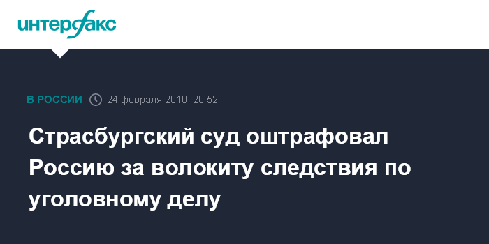 Страсбургский суд оштрафовал Россию за волокиту следствия по уголовному делу