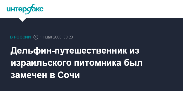 Сочи. 11 мая. ИНТЕРФАКС-ЮГ - Сотрудники сочинского аквариума в акватории побережья Черного моря в Хостинском районе обнаружили дельфина из израильского открытого питомника.