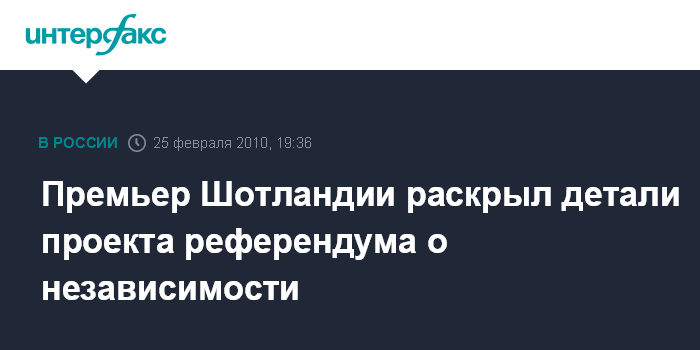 Лондон. 25 февраля. ИНТЕРФАКС - Премьер-министр Шотландии и лидер Шотландской национальной партии Алекс Сэлмонд обнародовал предварительный законопроект о проведении референдума по вопросу о независимости Шотландии от Соединенного Королевства, указав на изменение политики партии, сообщает в четверг британская The Guardian.