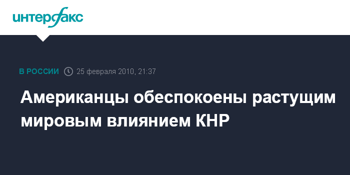 "Столкнувшись с высоким уровнем безработицы и трудностями в экономике, большинство американцев думают, что в грядущие годы Соединенные Штаты будут играть меньшую роль в мировой экономике, многие уверены: тогда как ХХ век мог быть назван "веком Америки", XXI век будет принадлежать Китаю", - пишет газета, ссылаясь на данные социологического опроса, проведенного совместно с телекомпаний ABC News. Он был проведен на фоне значительного напряжения отношений между Пекином и Вашингтоном из-за недавней встречи президента США Барака Обамы с далай-ламой, а также одобрения Конгрессом поставки американских вооружений на Тайвань на общую сумму в $6,4 млрд.