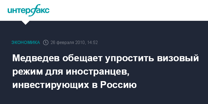 Медведев обещает упростить визовый режим для иностранцев, инвестирующих в Россию