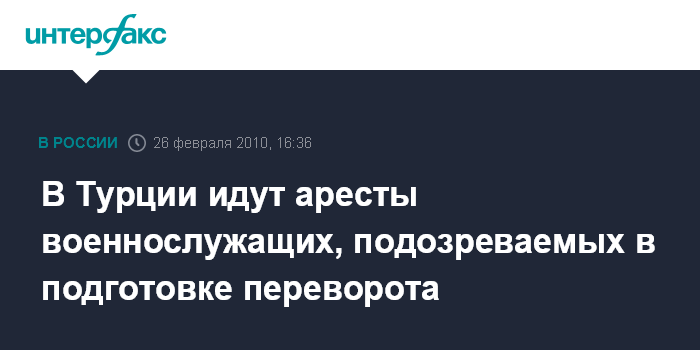 Москва. 26 февраля. INTERFAX.RU - Еще 18 военнослужащих, один из которых в отставке, арестованы в Турции в рамках расследования возможного военного заговора с целью свержения правящей в стране исламско-консервативной Партии справедливости и развития, сообщает в пятницу турецкий телеканал НТВ. По данным канала, операция была проведена в 13 провинциях страны. Один из задержанных командующий ополченцами турецкой провинции Конья.