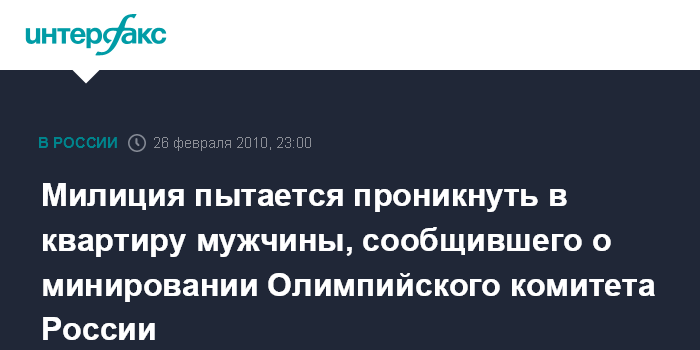 Милиция пытается проникнуть в квартиру мужчины, сообщившего о минировании Олимпийского комитета России