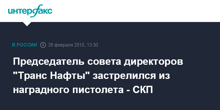 Председатель совета директоров "Транс Нафты" застрелился из наградного пистолета - СКП
