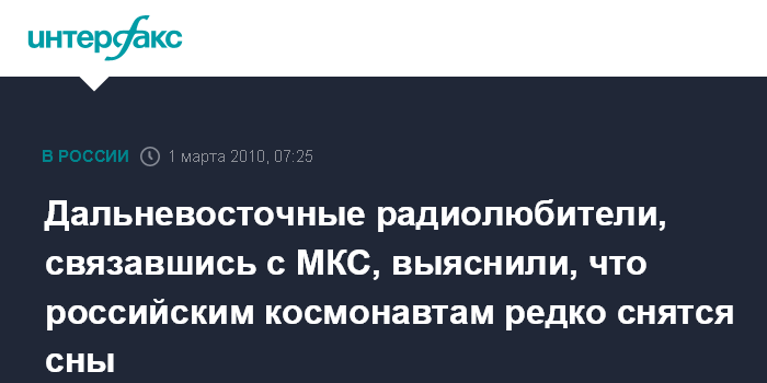 Дальневосточные радиолюбители, связавшись с МКС, выяснили, что российским космонавтам редко снятся сны