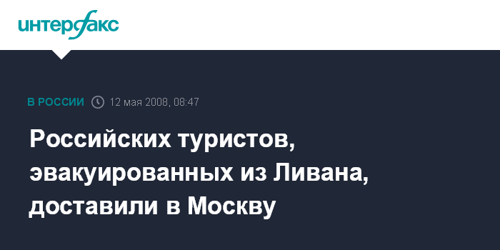 Москва. 12 мая. INTERFAX.RU - Самолет с российскими туристами, эвакуированными из Ливана, сегодня утром приземлился в Москве.