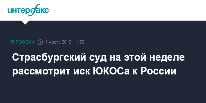 Страсбургский суд на этой неделе рассмотрит иск ЮКОСа к России