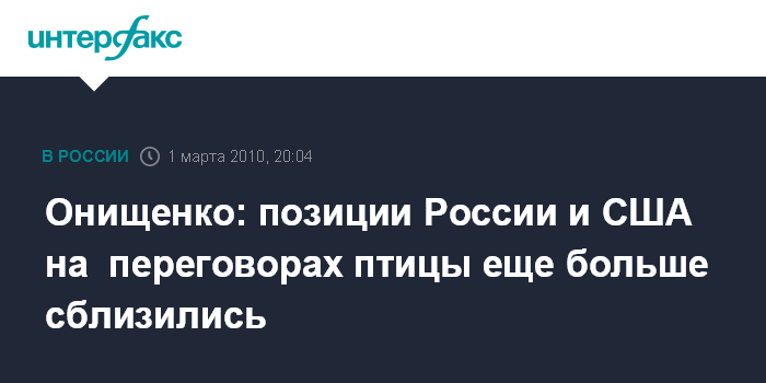 Онищенко: позиции России и США на переговорах птицы еще больше сблизились