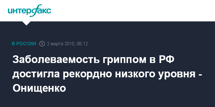 Заболеваемость гриппом в РФ достигла рекордно низкого уровня - Онищенко
