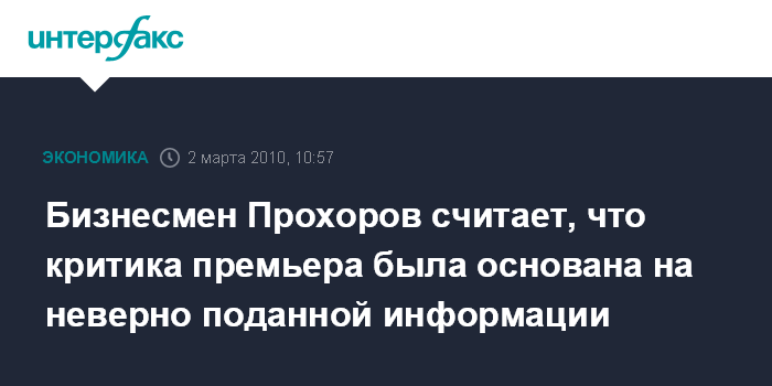 Бизнесмен Прохоров считает, что критика премьера была основана на неверно поданной информации