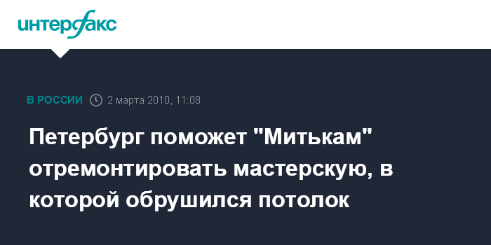 Петербург поможет "Митькам" отремонтировать мастерскую, в которой обрушился потолок