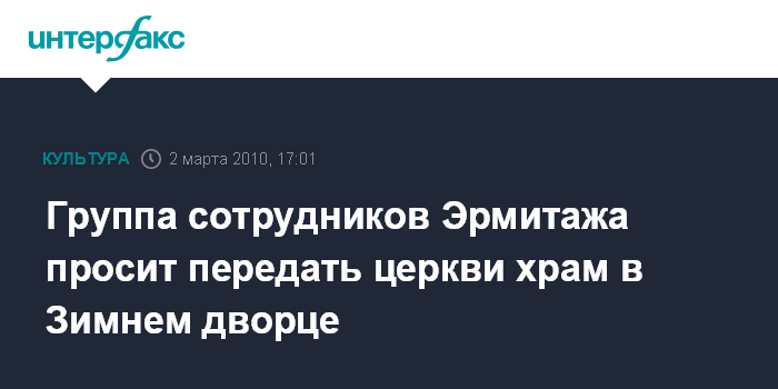 Группа сотрудников Эрмитажа просит передать церкви храм в Зимнем дворце