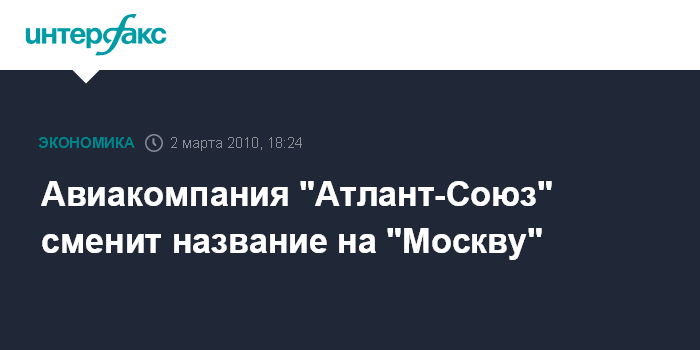 Авиакомпания "Атлант-Союз" сменит название на "Москву"