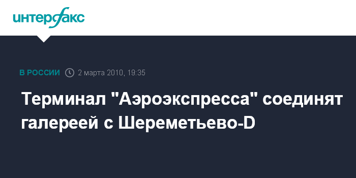 Москва. 2 марта. INTERFAX.RU - Соединительная галерея, оснащенная "бегущими дорожками" (траволаторами), с 15 мая свяжет терминал "Аэроэкспресса" с терминалом D аэропорта "Шереметьево", сообщила пресс-служба перевозчика, доставляющего пассажиров по железной дороге в аэропорты Москвы.