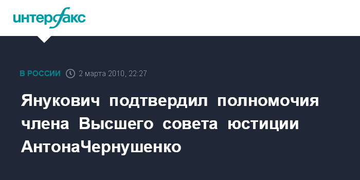 февраля 2010 г. о назначении Антона Чернушенко членом Высшего совета