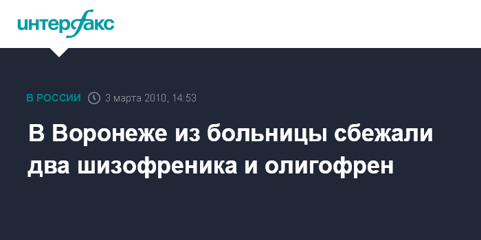 Воронеж. 3 марта. INTERFAX.RU - В Воронежской области милиция разыскивает трех сбежавших на прошлой неделе пациентов психоневрологического интерната, расположенного в Рамонском районе, сообщили "Интерфаксу" в среду в районном ОВД.