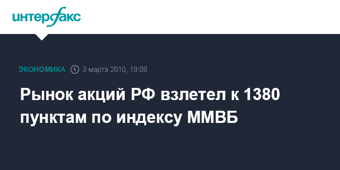 Москва. 3 марта. INTERFAX.RU - Рынок акций РФ в среду взлетел к 1380 пунктам по индексу ММВБ следом за подъемом мировых фондовых площадок и нефтью на новостях о мерах по сокращению бюджета Греции, а также на позитивной статистике из США.