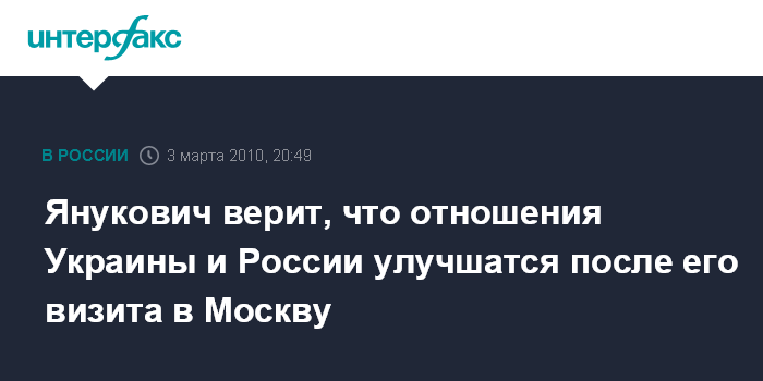 Киев. 3 марта. INTERFAX.RU - Президент Украины Виктор Янукович уверен, что его официальный визит в Москву будет способствовать радикальному улучшению российско-украинских отношений.