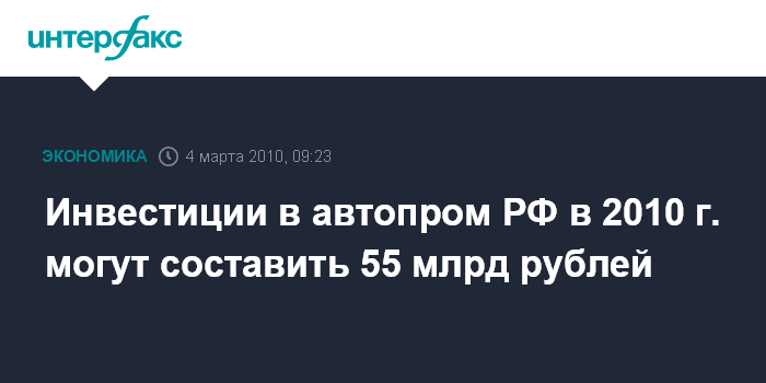 Инвестиции в автопром РФ в 2010 г. могут составить 55 млрд рублей