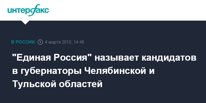 "Единая Россия" называет кандидатов в губернаторы Челябинской и Тульской областей
