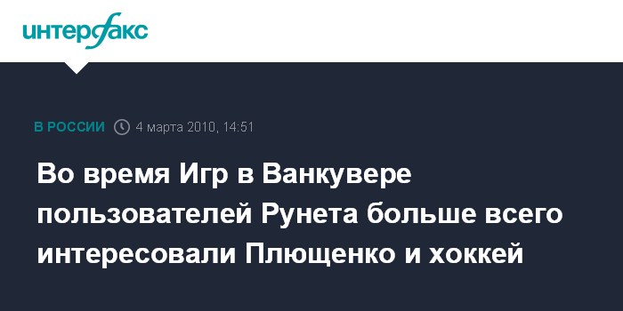 Во время Игр в Ванкувере пользователей Рунета больше всего интересовали Плющенко и хоккей