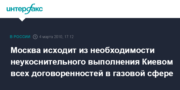 Москва исходит из необходимости неукоснительного выполнения Киевом всех договоренностей в газовой сфере