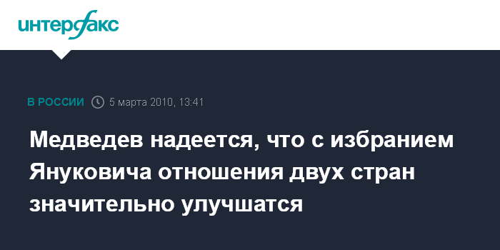 Медведев надеется, что с избранием Януковича отношения двух стран значительно улучшатся