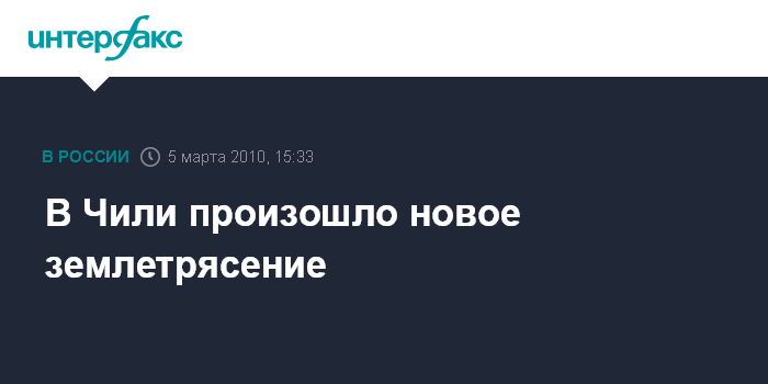 Москва. 5 марта. INTERFAX.RU – Подземные толчки магнитудой 6,8 зафиксированы на территории Чили в пятницу днем, передает американская телекомпания CNN. Это произошло почти неделю спустя после того, как страна пострадала от разрушительного землетрясения магнитудой 8,8.