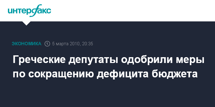 Афины. 5 марта. INTERFAX.RU - Парламент Греции утвердил в пятницу новый законопроект по сокращению дефицита госбюджета.