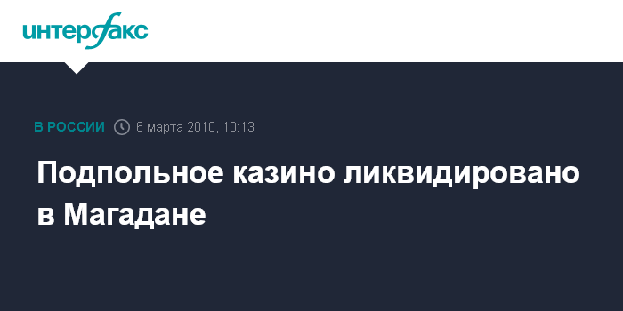 Магадан. 6 марта. INTERFAX.RU - Сотрудники ФСБ совместно с милицией и прокуратурой Магадана выявили в областном центре подпольное казино, которое работало нелегально последние восемь месяцев.