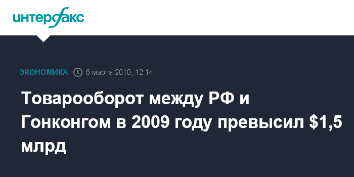 Товарооборот между РФ и Гонконгом в 2009 году превысил $1,5 млрд