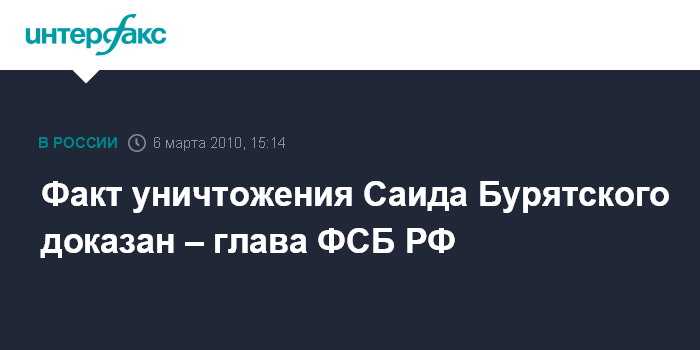 Факт уничтожения Саида Бурятского доказан – глава ФСБ РФ