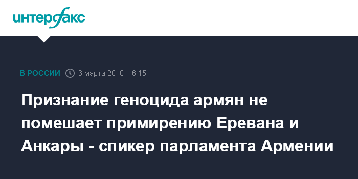 Признание геноцида армян не помешает примирению Еревана и Анкары - спикер парламента Армении