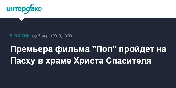 Премьера фильма "Поп" пройдет на Пасху в храме Христа Спасителя