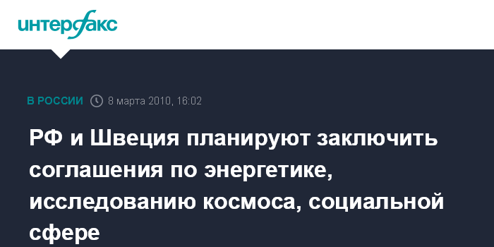 РФ и Швеция планируют заключить соглашения по энергетике, исследованию космоса, социальной сфере