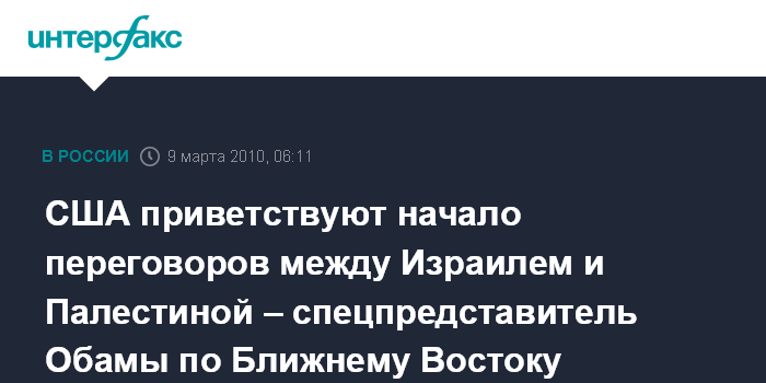 Вашингтон. 9 марта. ИНТЕРФАКС - США высоко оценивают начало непрямых переговоров между Израилем и Палестиной, заявил в понедельник спецпредставитель президента США по Ближнему Востоку Джордж Митчелл.