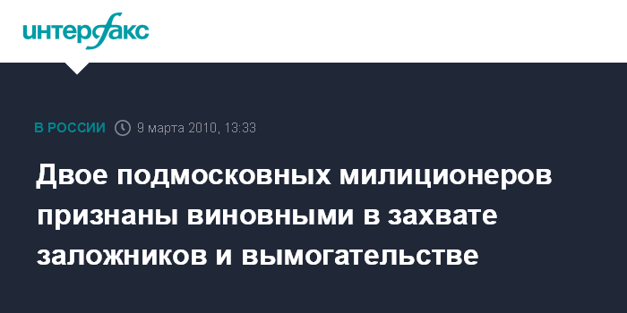 Двое подмосковных милиционеров признаны виновными в захвате заложников и вымогательстве